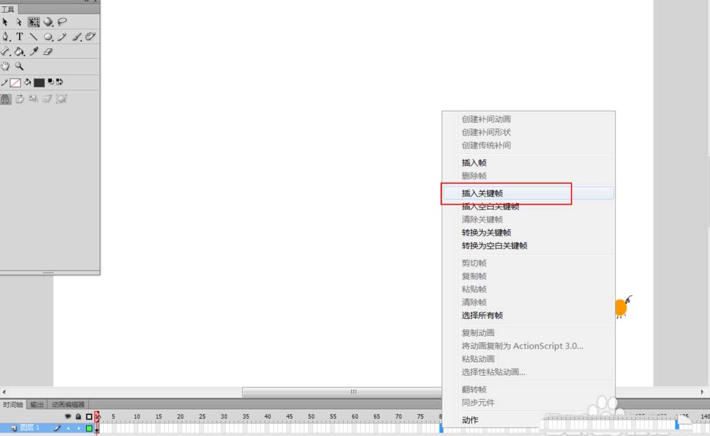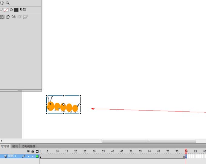 10、 然后在第80幀插入關鍵幀,改變毛毛蟲的位置,