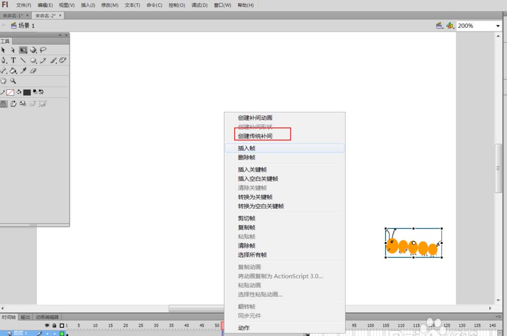 11、點擊第2~79幀之間任一幀,右擊創建傳統補間動畫。