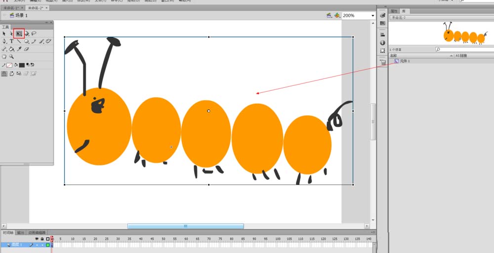 7、選擇“選擇工具”,在毛毛蟲的尾部拖動,來改變毛毛蟲的姿勢。