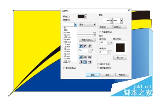 4、第一個圖層做好之后,利用貝塞爾工具和點線工具畫出圖二黃色的外框,然后填充為黃色C0 M0 Y100 K0 這樣,第二個圖層就做好了。