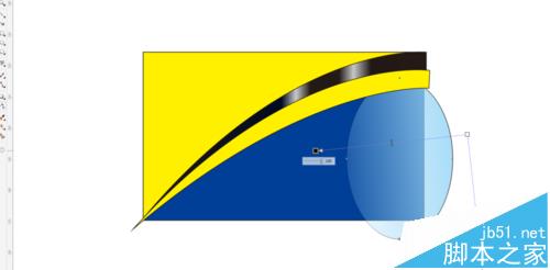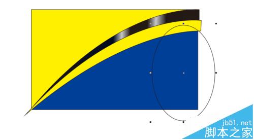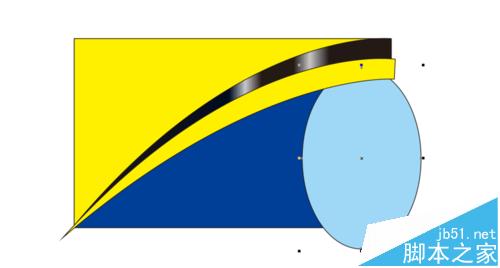 9、然后利用橢圓工具畫一個橢圓型,如下圖,將其填充為冰藍色C40 M0 Y0 K0,ctrl+pagedown鍵將橢圓移到至黃色圖層下面