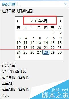 5、點擊修改日期后,點擊“2015年5月”,此時就可以在搜索框中看到搜索的時間范圍。