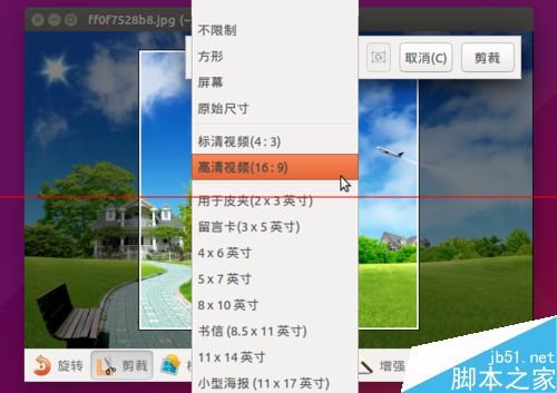 點擊剪裁浮動工具欄上的尺寸選擇下拉列表(步驟 2 中標識“方形”的下拉列表),會看到有多種預定義剪裁尺寸供我們選擇。