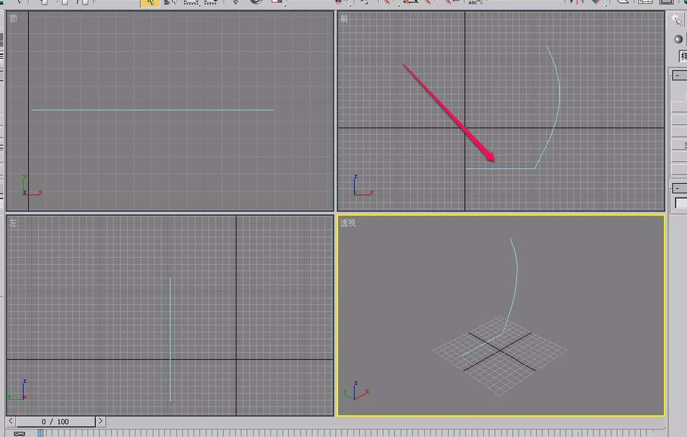 3、我們在“前”視圖中繪制一個如圖所示的圖形。