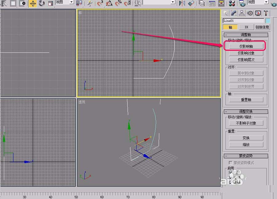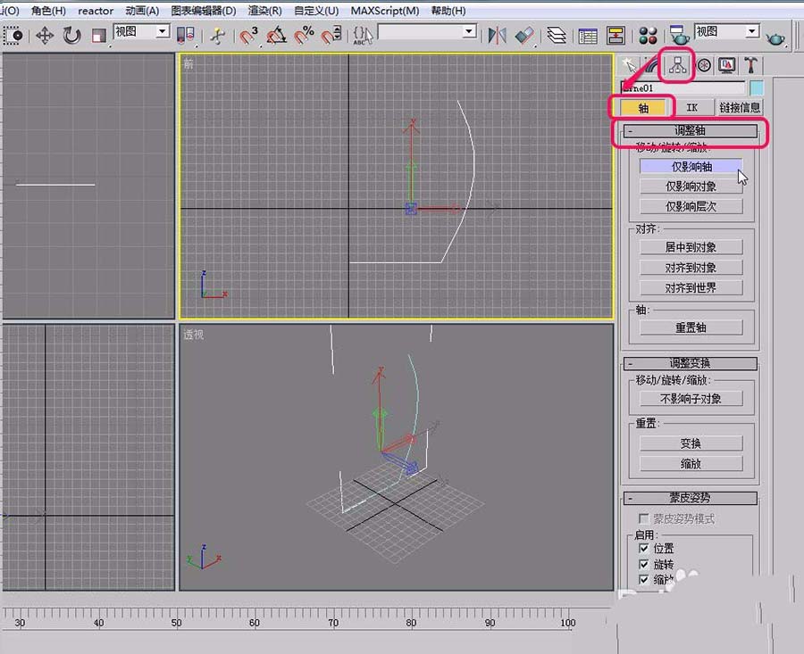 4、打開“層次”選項卡中的“軸”選項,進一步打開“調整軸”卷展欄。