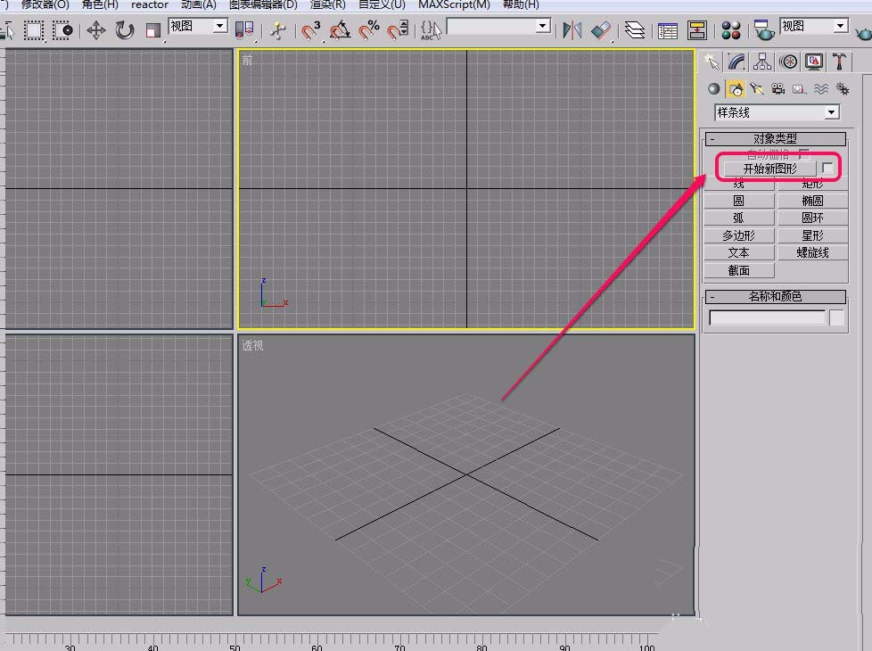 2、將“創建”選項卡中“幾何體”項中的“對象類型”卷展欄打開,把“開始新圖形”右側的對勾去掉。