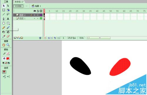 注意同意圖層中同一幀下不能有2個元件經(jīng)行動畫補(bǔ)間。