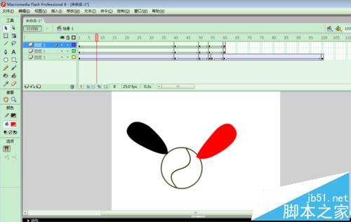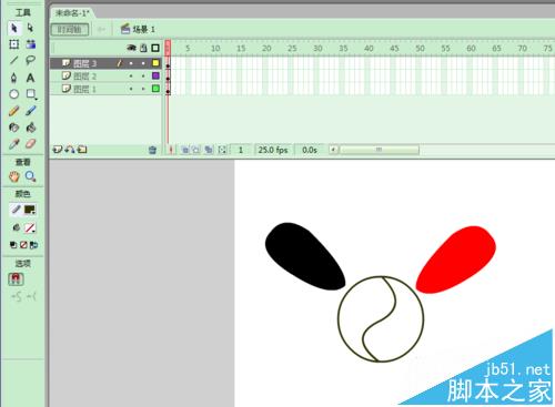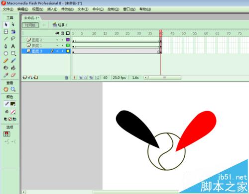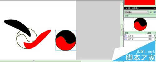 3、新建圖層2把繪制的其中一個移動到圖層2中,新建圖層3繪制一個太極的圖形轉(zhuǎn)換為元件;