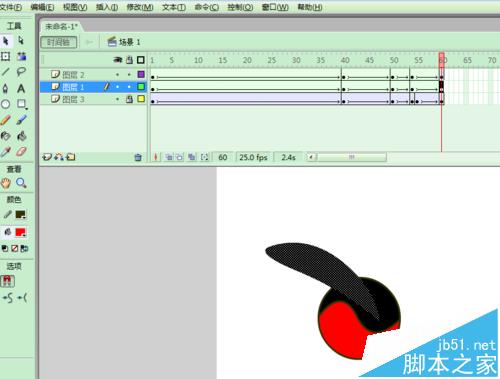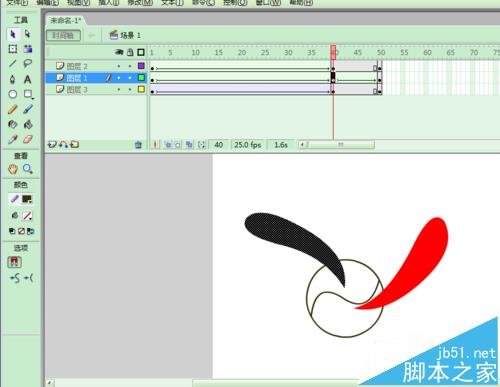 4、添加關(guān)鍵幀,并且對圖形進(jìn)行修改,圖層3添加補(bǔ)間動畫調(diào)成位置;