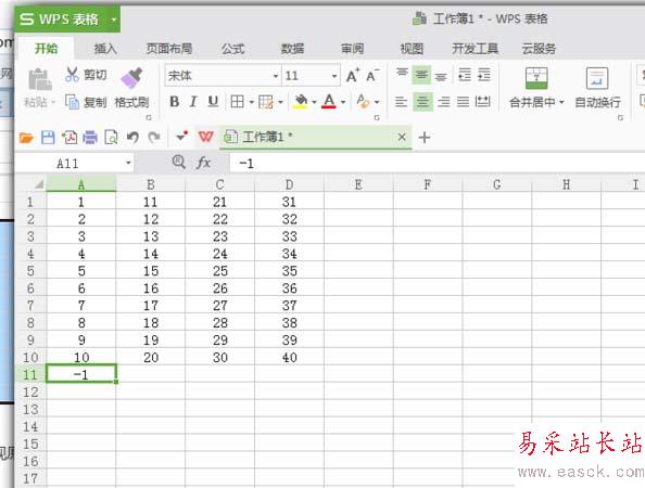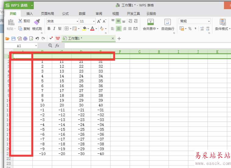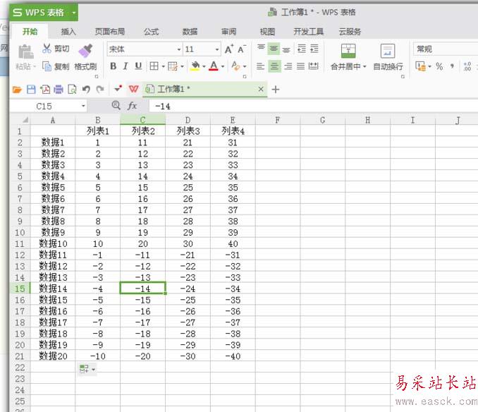 4、矩陣數據完成。填充之后簡單的4列數字矩陣就完成了,接下來在列表中輸入負數或其他數據,進行排列。如圖: