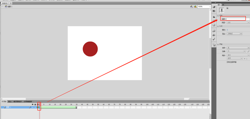 6、然后我們?cè)趤?lái)看時(shí)間軸的第一個(gè)關(guān)鍵幀,會(huì)看到多了一個(gè)幀標(biāo)簽出來(lái)了。這樣就方便我們對(duì)復(fù)雜flash動(dòng)畫項(xiàng)目的查看了。