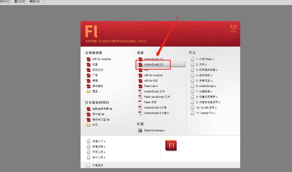 1、打開等待flash軟件啟動(dòng),然后在flash的啟動(dòng)軟件界面中選擇新建一個(gè)flash動(dòng)畫項(xiàng)目