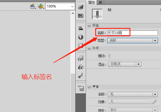 5、在標(biāo)簽選項(xiàng)中輸入我們第一個(gè)關(guān)鍵幀的標(biāo)簽名稱,這里我輸入的是“形變動(dòng)畫”。