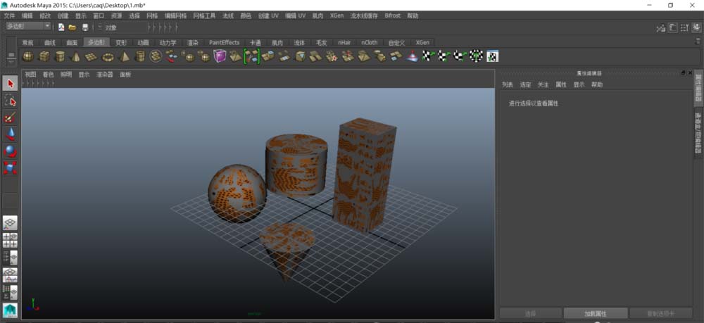 1、之前的貼圖設置就不累述了,下圖已設置了相關貼圖。關閉Hypershade窗口后,發現物體并沒有變化(如下面的右圖所示)