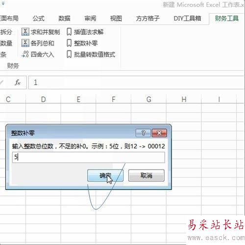 5、第5步:彈出對話框輸入補零位數,如下圖所示:
