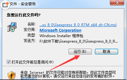 1、在本站下載文件并解壓縮后,會得到兩個程序,其中iisexpress_8_0_RTM_x86_zh-CN.msi:32位程序;iisexpress_8_0_RTM_x64_zh-CN.msi:64位程序,由于小編的是系統是win764位,在這里小編以iisexpress_8_0_RTM_x64_zh-CN.msi程序為例進行安裝。
