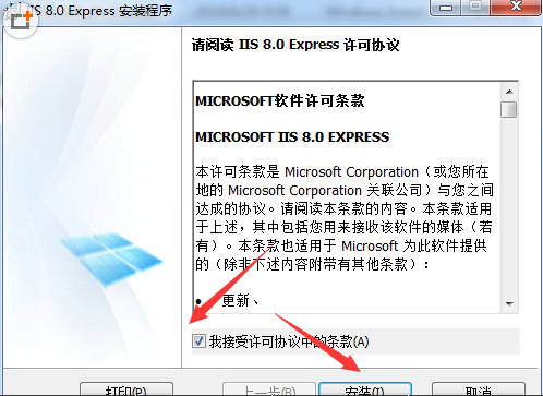 3、勾選“我接受許可協議中的條款”,并點擊安裝。