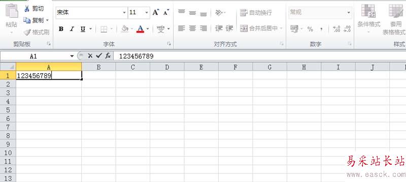 2、接著在excel的菜單中就會出現“開發工具”這一個選項卡,選擇單元格a1輸入數據“123456789”。