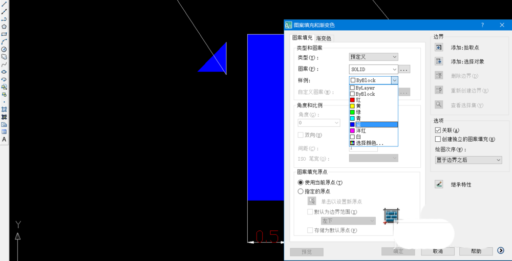 4、點擊繪圖工具欄中的“矩形”或直線按鈕,繪制側面正視圖形,標注高度和寬度,點擊背景按鈕選擇填充顏色,再選中邊界即可為側面正視圖形設置背景顏色。