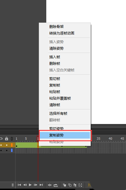 4、在30幀的位置在插入一個關鍵幀,因為在30幀的動作應該是將兩臂再次伸展,所以在第十幀右鍵鼠標選擇復制姿勢,然后在第30幀位置右鍵粘貼姿勢。