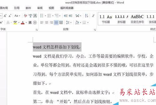 以上就是在word文檔中如何給文字添加下劃線方法介紹,操作很簡單的,大家學會了嗎?希望這篇文章能對大家有一定的幫助!
