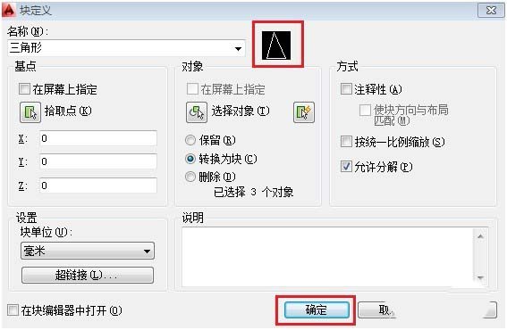 選擇后,返回塊定義界面,然后點擊【確定】。