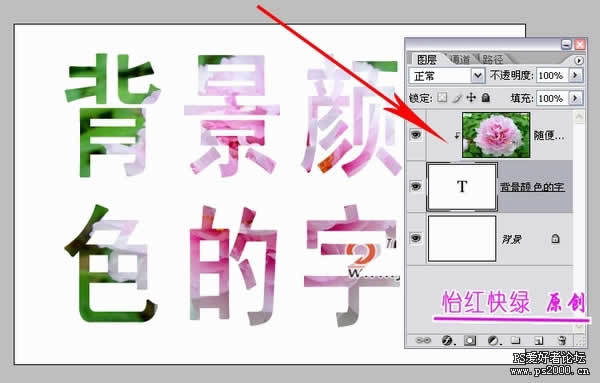 看了上面兩個例子,您對剪貼蒙版一定有了初步認識,再聯想一下,文字圖層是什么?文字圖層不是特殊形狀嗎!用文字圖層創建剪貼蒙版會是什么效果?