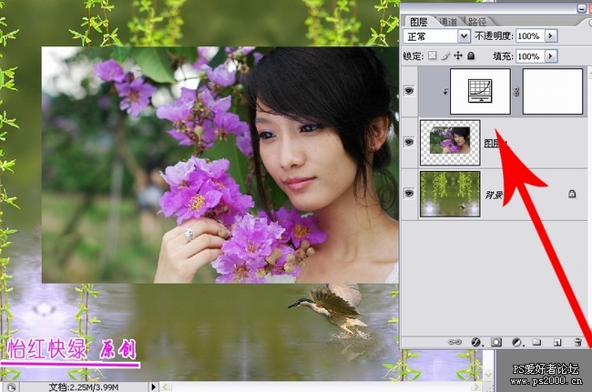 看一下這個圖,按照圖示的步驟實際操作一下。拖動一下文字圖層,再看下效果。