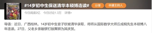 優秀!14歲初中生保送清華本碩博連讀 ... [更多詳細]