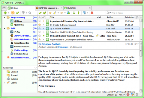 開源跨平臺的RSS閱讀器客戶端-QuiteRSS 中文版,簡單實用 ... [更多詳細]