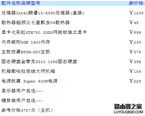 2015年Intel i5-4590游戲電腦主機配置推薦 ... [更多詳細]