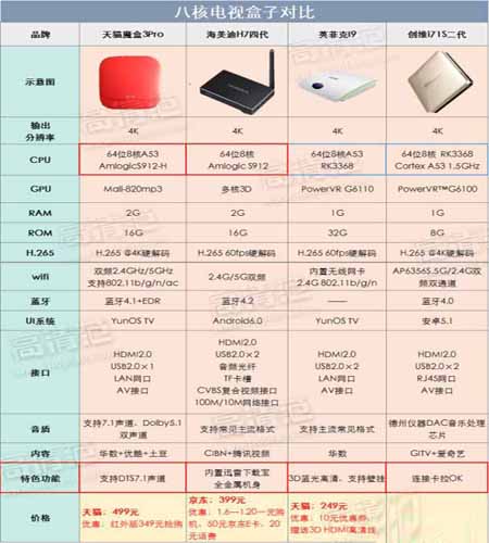 八核電視盒子哪個比較好?天貓魔盒3Pro/創維i71/海美迪H7/英菲克I9全面區別對比評測 ... [更多詳細]