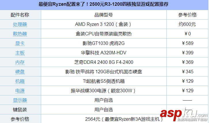 最便宜的2500元R3 1200四核獨顯搭配GTX1030游戲電腦配置推薦 ... [更多詳細]