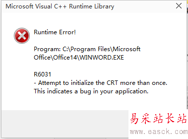 word2010打不開RuntimeError報錯R6031的解決方法介紹 ... [更多詳細]