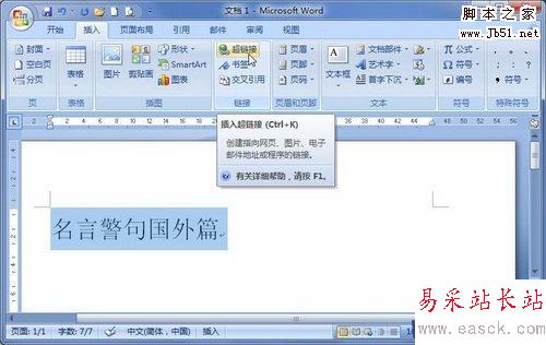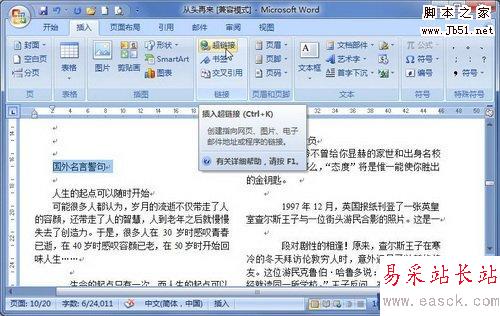 在Word2007中創建指向其他文檔的書簽超鏈接的圖文教程 ... [更多詳細]