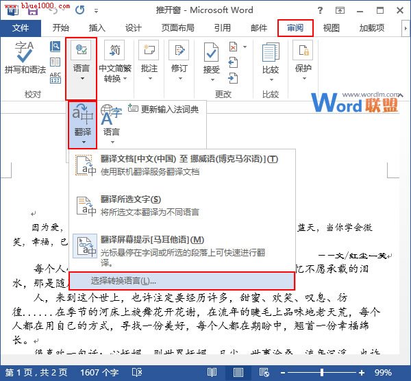 Word2013怎么中、英語在線翻譯 ... [更多詳細]