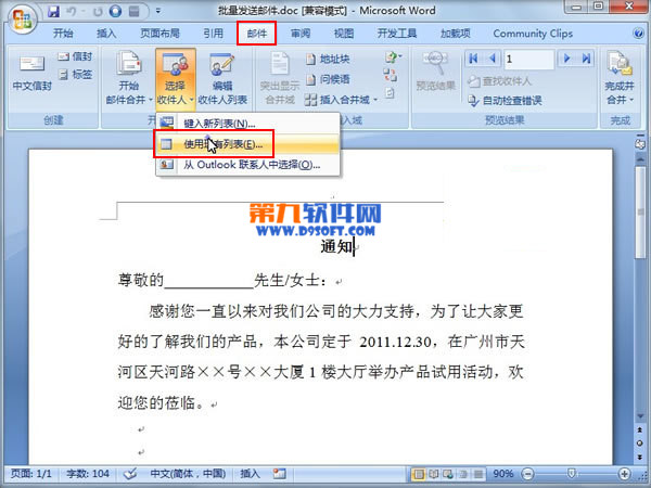 怎樣在Word2007中直接批量發送郵件 ... [更多詳細]