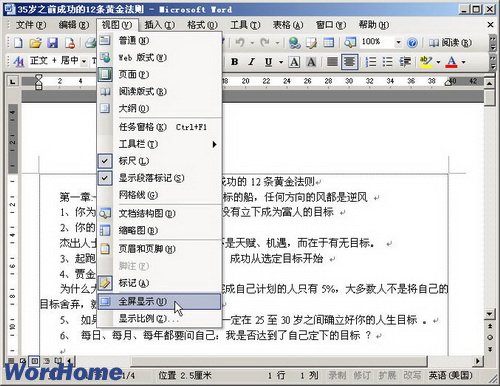 在Word2003中打開和關閉“全屏顯示”視圖 ... [更多詳細]