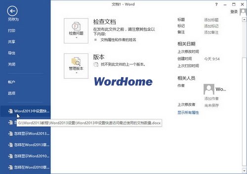 Word2013中設置快速訪問最近使用的文檔數量 ... [更多詳細]