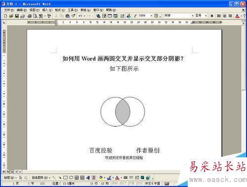 Word怎么將兩個圓交叉重疊部分填充陰影? ... [更多詳細]