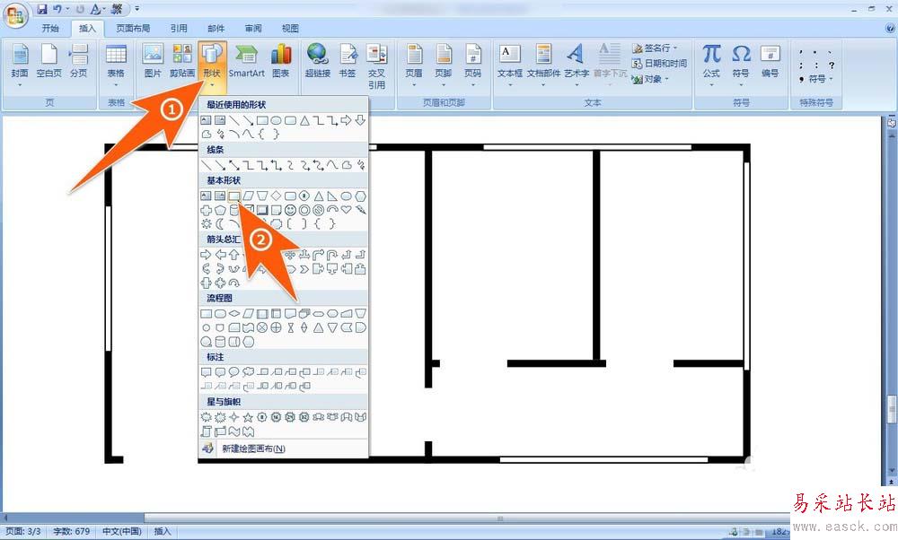 word怎么給平面圖畫門? ... [更多詳細]