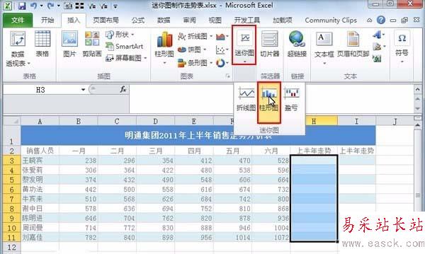 Excel表格中怎么添加迷你圖走勢表? ... [更多詳細]