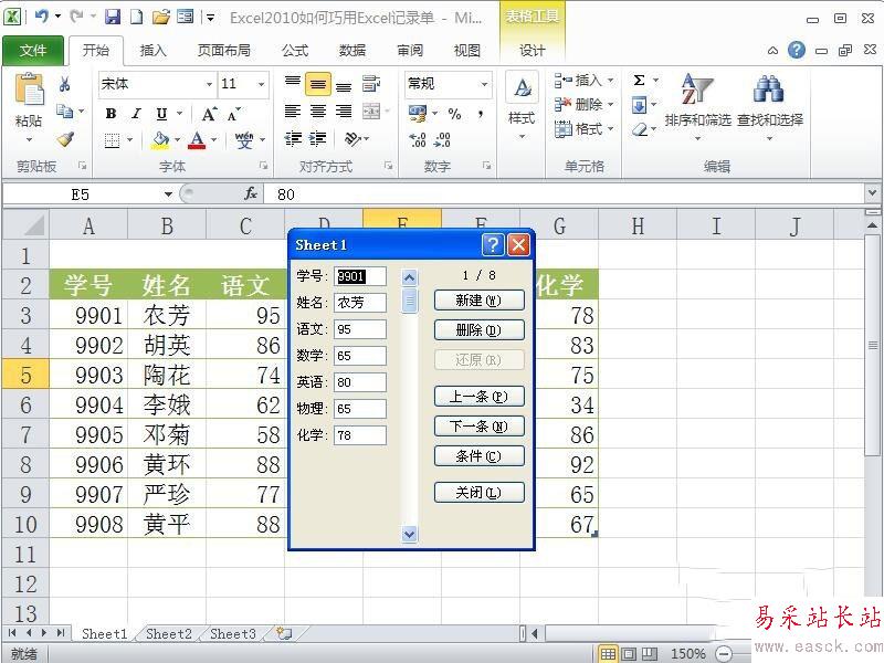 如何使用Excel2010的記錄單功能來管理成績表? ... [更多詳細]
