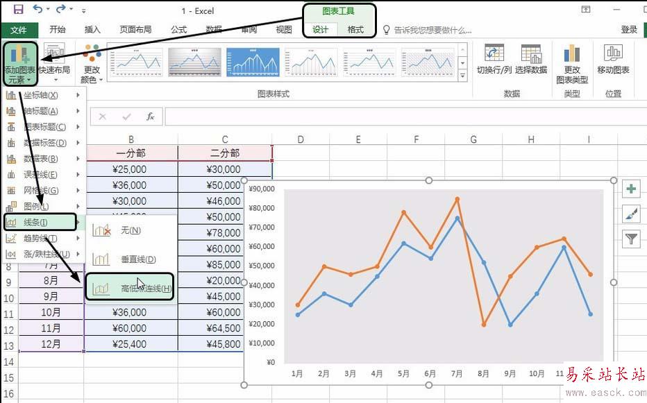 Excel2016折線圖怎么設置高低點連線? ... [更多詳細]