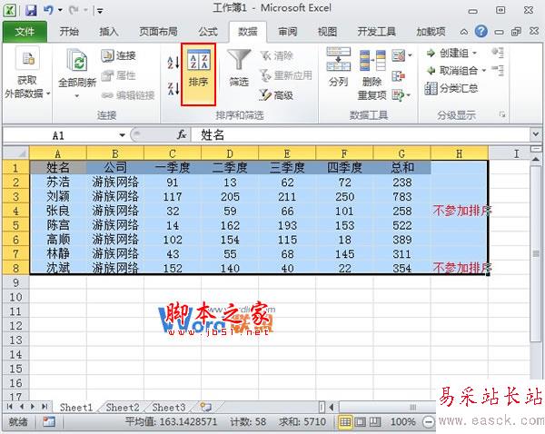 在Excel2010中設定某些單元格數據不參與排序的方法介紹 ... [更多詳細]