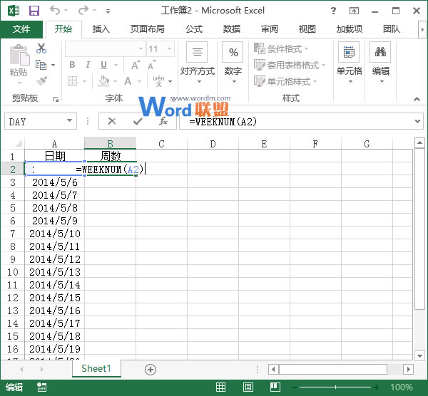 怎么計算Excel2013中當前日期所在的周數 ... [更多詳細]