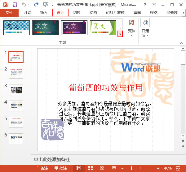 給PowerPoint2013演示文稿應用內置的Office主題樣式 ... [更多詳細]