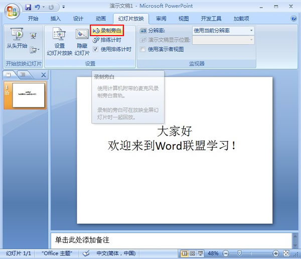 PowerPoint2007中如何錄制旁白 ... [更多詳細]