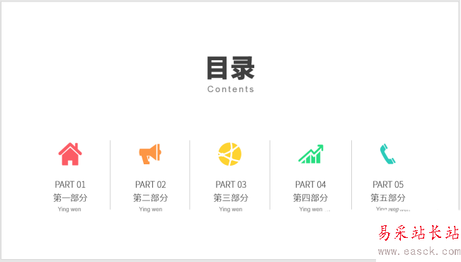 PPT怎么設計簡潔大方的圖標并列式目錄? ... [更多詳細]