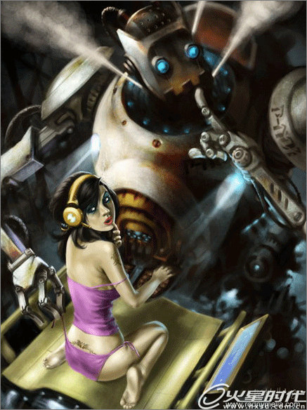 PS鼠標繪制淘氣的機器人和女機械修理師 ... [更多詳細]